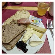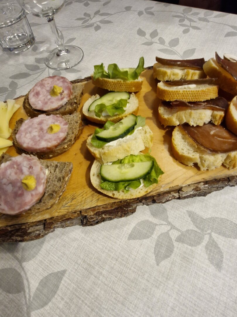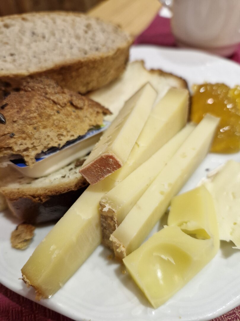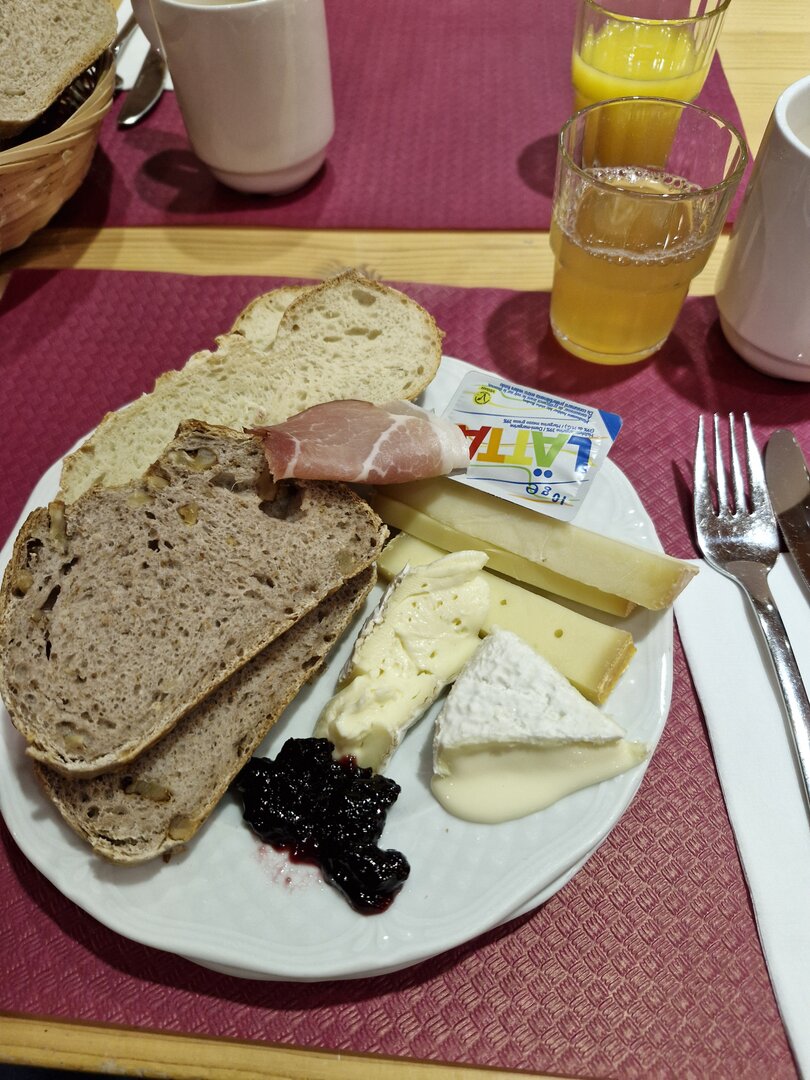 Die Verpflegung im Hotel war super und gut organisiert. Die Auswahl beim Frühstück war groß und frisch. Vermisst habe ich am ersten Tag die Brötchen zum Frühstück. Aber wir hatten dann viel besseres, jeden Tag eine große Auswahl an frisch gebackenem, teilweise noch warmem Brot. Also besseres Frühstück als hier habe ich bis jetzt nirgends bekommen. Das Abendessen war meistens Buffet mit 3-4 Gerichten und ein Salatbuffet. Einen Abend gab es Raclette, also nichts für mich. Aber es gab ja auch wieder frisches Brot und gute Wurst/Schinken also waren alle glücklich. Für alle die gerne Käse essen war die ganze Verpflegung ein großer Traum.