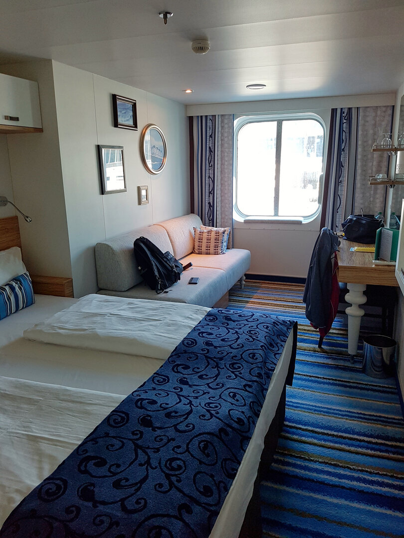 Das Hotel war ja unser Schiff, die Mein Schiff 3. Die Reederei hat uns sehr gut gefallen, auch die Größe oder sagen wir besser die "Kleine" des Schiffes. Wir hatten eine Außenkabine auf Deck 3. Diese Kategorie werden wir wohl öfter nehmen, ein Balkon ist in den geografischen Regionen, in die wir Reisen nicht erforderlich, denn bei gutem Wetter kann man sich prima an Deck einen Platz suchen. Eine Innenkabine wäre für uns nichts.
